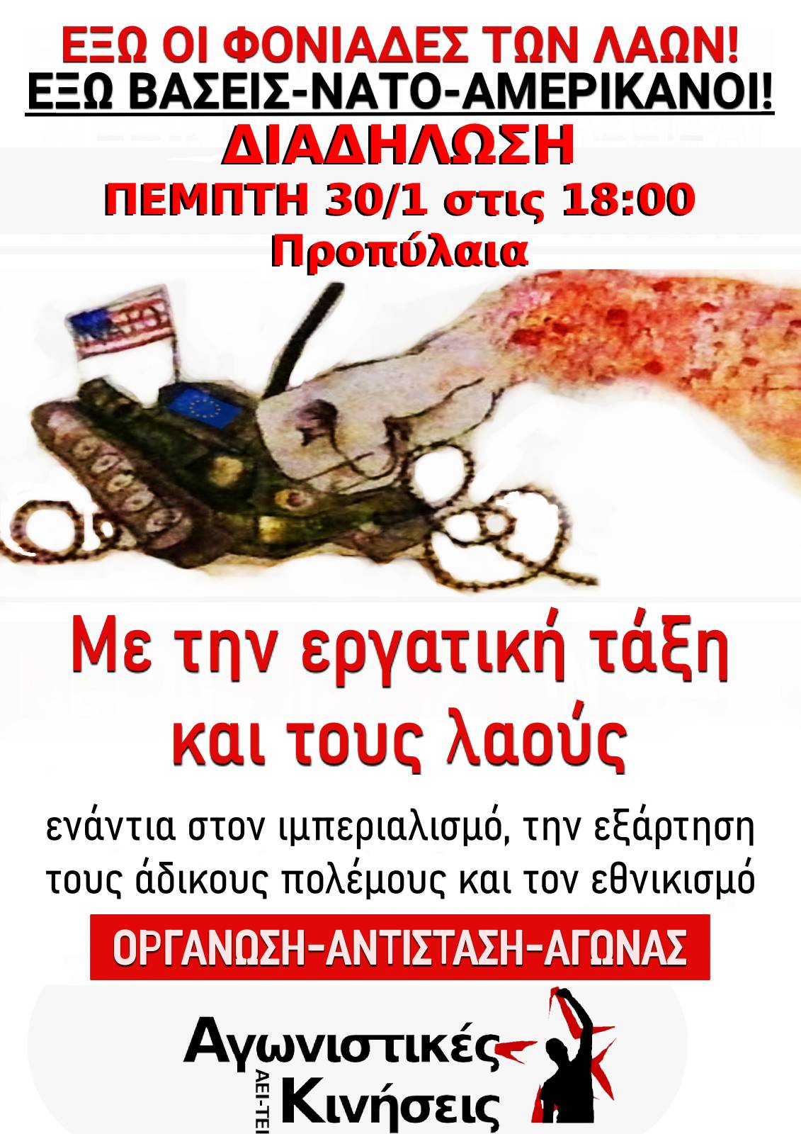 Αντιιμπεριαλιστικό Κίνημα28 Ιαν 2020 ΑΘΗΝΑ | Έξω οι φονιάδες των λαών! Κάλεσμα για κινητοποίηση Πέμπτη 30/1, 18:00, Προπύλαια