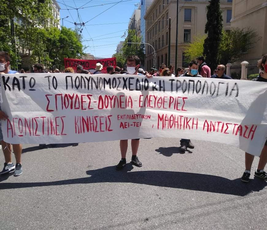 Οι Αγωνιστικές Κινήσεις ΑΕΙ-ΤΕΙ συγκροτήσαμε ένα μαζικό μπλοκ μαζί με τη Μαθητική Αντίσταση και τις Αγωνιστικές Κινήσεις Εκπαιδευτικών. Μέσα από τα συνθήματά μας θελήσαμε να αναδείξουμε τις πτυχές της επίθεσης στην εκπαίδευση σε όλες τις βαθμίδες της: τους ταξικούς φραγμούς, την εντατικοποίηση, το εξεταστικό κάτεργο, την απάτη της τηλεκπαίδευσης, τον έλεγχο (και με κάμερες!) και την προσπάθεια πειθάρχησης της νεολαίας, την αξιολόγηση και την αδιοριστία των εκπαιδευτικών, αλλά και τη μοναδική διέξοδο λαού και νεολαίας για την υπεράσπιση του λαϊκού δικαιώματος στις σπουδές: ΟΡΓΑΝΩΣΗ - ΑΝΤΙΣΤΑΣΗ - ΔΙΕΚΔΙΚΗΣΗ!