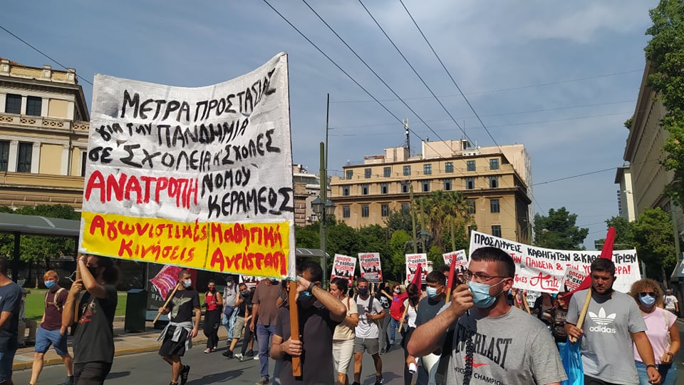 Με αρκετή μαζικότητα (περίπου 1500 άτομα) πραγματοποιήθηκε η μαθητική διαδήλωση στις 24/9 στα Προπύλαια. Μαθητές, φοιτητές και εκπαιδευτικοί διαδήλωσαν καταγγέλλοντας τα ανεπαρκή έως ανύπαρκτα μέτρα προστασίας με τα οποία το υπουργείο παιδείας προχώρησε στο άνοιγμα των σχολείων, αλλά και τα βάρβαρα μέτρα που έρχονται να εξοντώσουν μαθητές και φοιτητές (ήδη ψηφισμένοι νόμοι ή νομοσχέδια που είναι προς ψήφιση). Οι Αγωνιστικές Κινήσεις και η Μαθητική Αντίσταση πορεύτηκαν με δικό τους μπλοκ.