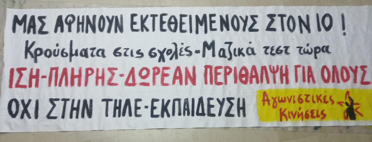 Το ξέσπασμα της πανδημίας του covid-19 απέδειξε τα σάπια θεμέλια πάνω στα οποία στέκεται το καπιταλιστικό ιμπεριαλιστικό σύστημα. Η πλειοψηφία των κρατών με βάση τις πολιτικές που είχαν ακολουθήσει, έχουν διαλύσει τα συστήματα υγείας, αφήνοντας τους λαούς εκτεθειμένους στον υγειονομικό κίνδυνο. Η κυβέρνηση δεν έχει πάρει κανένα μέτρο ενίσχυσης για την προστασία της υγείας του λαού, σε αντίθεση με τα αντεργατικά μέτρα και τους αντιλαϊκούς νόμους που προωθεί διαρκώς. Κυβέρνηση-κεφάλαιο-ιμπεριαλισμός βρήκαν την ευκαιρία να προχωρήσουν σε μια καθολική επίθεση απέναντι σε ότι δικαίωμα και κατάκτηση μας είχε απομείνει. Ο δίμηνος εγκλεισμός της καραντίνας, τους έδωσε την δυνατότητα να προχωρήσουν την τηλεκπαίδευση. Μια διαδικασία η οποία αποτέλεσε έναν ωμό αποκλεισμό για χιλιάδες φοιτητές και μαθητές που προέρχονταν από τα φτωχά και λαϊκά στρώματα.