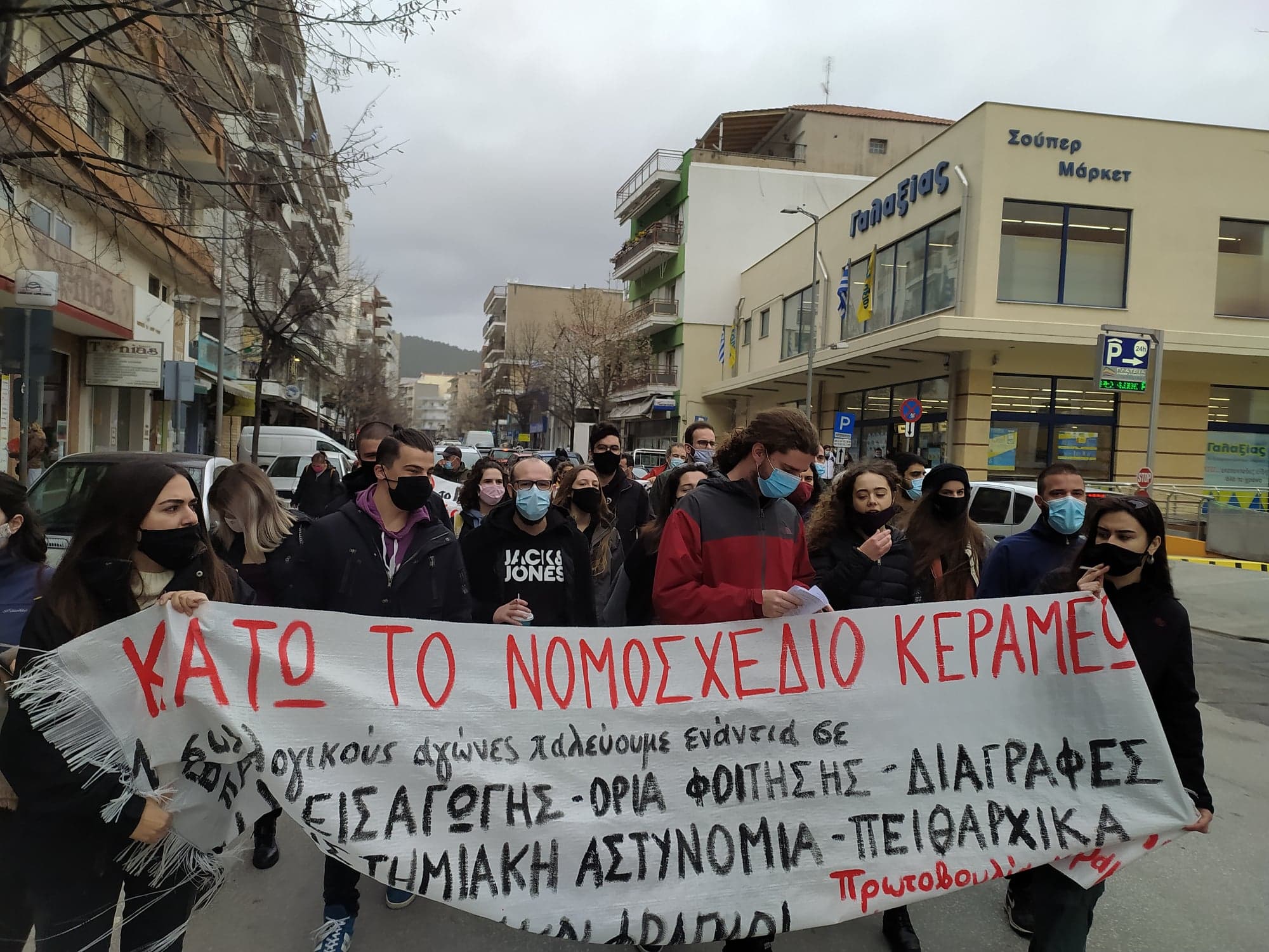 Με καλή μαζικότητα, αλλά μικρότερη των προηγούμενων κινητοποιήσεων, πραγματοποιήθηκε η σημερινή πορεία ενάντια στο ν/σ Κεραμέως. Στη διαδήλωση με περίπου 120 άτομα, συμμετείχαν ο ΣΦΞ, με πρόταση της ΠΚΣ που στηρίχθηκε από ΕΑΑΚ και ΜΠΛΟΚΟ και ο Σύλλογος Οικότροφων Φοιτητών Ξάνθης με απόφαση της ΠΚΣ, με βασικό αίτημα «το νομοσχέδιο να μείνει στα χαρτιά» . Η Πρωτοβουλία φοιτητών ενάντια στο ν/σ Κεραμέως, που αποτελείται από τις Αγωνιστικές Κινήσεις και ανένταχτο κόσμο, κατέβασε την δική της πρόταση στα ΔΣ και των δύο συλλόγων, με βασικό άξονα το νομοσχέδιο να μην περάσει, ωστόσο τα ΕΑΑΚ συνδιαμόρφωσαν με την ΠΚΣ και στην συνέχεια το στήριξε και το ΜΠΛΟΚΟ. Στην κινητοποίηση συμμετείχαν επίσης το Αυτόνομο Σχήμα Ξάνθης, καθώς και η Πρωτοβουλία γονέων και εκπαιδευτικών. Βάσει των συνθηκών, η σημερινή μαζικότητα αλλά και η εικόνα των προηγούμενων κινητοποιήσεων, είναι ενθαρρυντικά δεδομένα για την πάλη απέναντι στο νομοσχέδιο αλλά και συνολικά της επίθεσης που δέχεται ο λαός και η νεολαία. Ωστόσο, δεν είναι αυτό που απαιτείται για να δοθεί απάντηση και ουσιαστική κόντρα με το σύστημα.