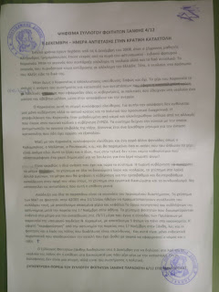 Η συνέλευση του Συλλόγου δεν πραγματοποιήθηκε για τρίτη συνεχόμενη φορά λόγω μειωμένης απαρτίας αλλά ο Σύλλογος μέσω του Δ.Σ. αποφάσισε να καλέσει σε διαδήλωση καταγγελίας της κρατικής τρομοκρατίας.