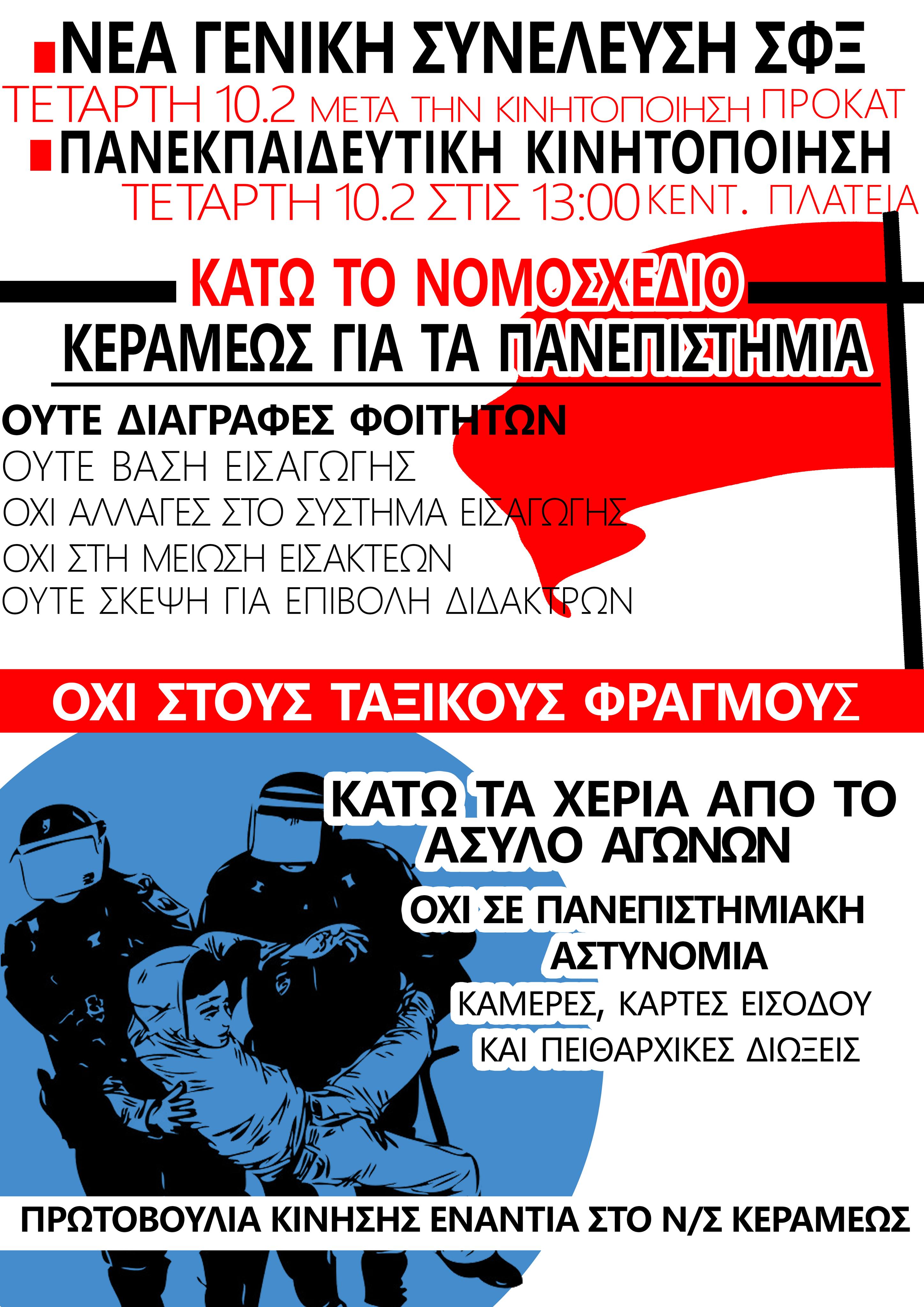 H συνάντηση της πρωτοβούλιας πραγματοποιήθηκε το Σάββατο 6.2 όπου έγινε απολογισμός της προηγούμενης κίνησης και προγραμματισμός του επόμενου διαστήματος. Η απόφαση της ήταν να κατεβάσει το κείμενο με το οποίο κινείται και με το οποίο συστάθηκε στο Δ.Σ. του Σ.Φ.Ξ και να είναι ανοικτό στην συνδιαμόρφωση με τις υπόλοιπες δυνάμεις ώστε να το υιοθετήσει και ο σύλλογος. Εφόσον αυτό δεν έγινε( και φάνηκε η καθόλου όρεξη δημιουργίας κατι κοινού)καθώς στηρίχτηκε μόνο από τις Αγωνιστικές Κινήσεις αποφάσισε την διακριτή της παρουσία και παρέμβαση την ημέρα της πανεκπαιδευτικής κινητοποίησης καθώς ήθελε να προωθήσει το δικό της πολιτικό πλαίσιο, την ανάλυση για το τι συντελείται στην εκπαίδευση και πώς αναλύει την επίθεση. Σαν επιλογή στηρίχτηκε και από κόσμο εκτός πρωτοβουλίας και δείχνει το καθήκον συνέχισης παρεμβάσεων και καλέσματος του φοιτητόκοσμου στην κινητοποίηση της Τετάρτης( μέρα που φαίνεται για την ψήφιση του νομοσχεδίου), στην οποία θα κινηθούμε με τον ίδιο τρόπο, και στην συνέλευση του Συλλόγου Φοιτητών Ξάνθης αμέσως μετά την κινητοποίηση. Να σημειώσουμε εδώ ότι στην συνάντηση της πρωτοβουλίας παρευρέθηκε και μέλος από την νεοσύστατη πρωτοβουλία γονέων και εκπαιδευτικών και εκφράστηκε από δική τους πλευρά η αναγκαιότητα συνέχισης του αγώνα που διεξάγεται το επόμενο διάστημα. Σημαντική στην κινητοποίηση ήταν και η συμμετοχή μάθητων και φαίνονται οι δυνατότητες για την συνέχιση των παρεμβάσεων στα σχολεία και την ένωση φοιτητων μαθητών εκπαιδευτικών γονέων ενάντια στο νομοσχέδιο έκτρωμα που είναι τα μόνα σύμμαχα στρώματα για την μαζικοποήση των κινητοποιήσεων!! Τα δύο καινούρια ραντεβού καλέστηκαν έπειτα από ΔΣ που έγινε σημερα, Κυριακή όπου αποφασίστηκε η συμμετοχή του Συλλόγου στην Πανεκπαιδευτικη Κινητοποιηση με ψήφισμα της ΠΚΣ που στηρίχτηκε από ΕΑΑΚ και BLOCO και το κάλεσμα της συνέλευσης.