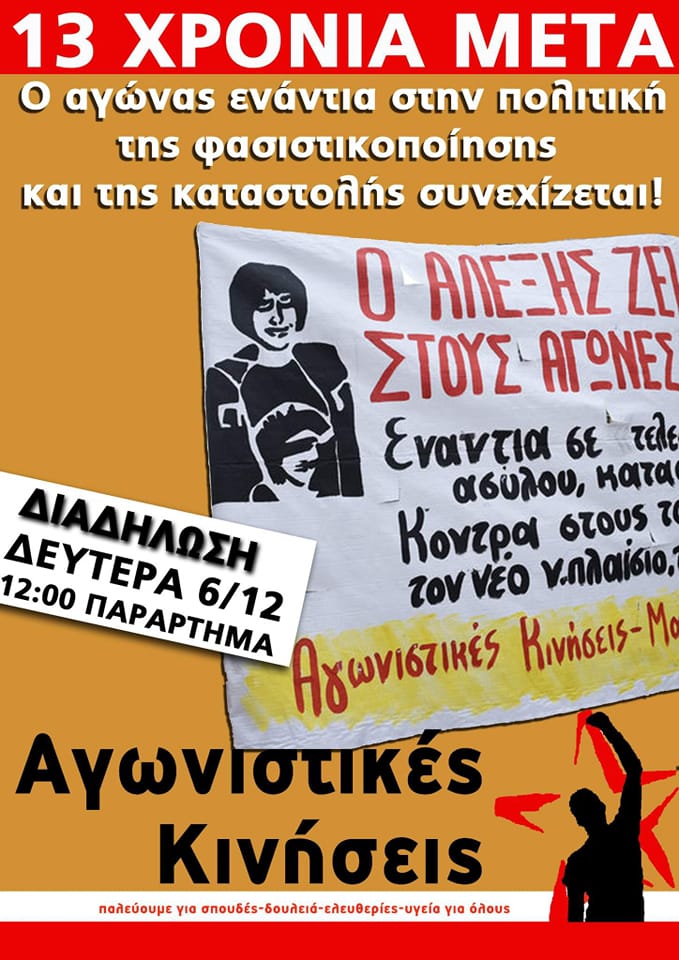 Δεκατρία χρόνια μετά την δολοφονία του 15χρονου μαθητή Αλέξανδρου Γρηγορόπουλου από τον ειδικό φρουρό Κορκονέα το σύστημα ακόμα τρέμει τους μαζικούς αγώνες της νεολαίας, η οποία είχε προταγωνιστικό ρόλο στην εξέγερση του Δεκέμβρη του '08.