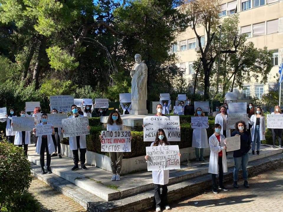 Φυσικά από όλες αυτές τις συμβολικές δράσεις δεν θα μπορούσε να λείπει ο επιστημονισμός και η στρεβλή αντίληψη αναφορικά με τη γνώση που χαρακτηρίζει αυτό το κομμάτι της αριστεράς. Συγκεκριμένα, η προσέγγιση αυτή είναι απόλυτα αντιληπτή στην αιτηματολογία που προτάσσουν στις Ιατρικές σχολές της χώρας, σχετικά με την επανέναρξη των κλινικών ασκήσεων. Χρησιμοποιώντας φράσεις όπως «1 χρόνο εκτός κλινικών, θα με εμπιστευόσουν;», «Γνώσεις ουσιαστικές, βάλτε μας στις κλινικές» και «Η θέση μας είναι δίπλα στον ασθενή, μέσα στο νοσοκομείο, μέσα στην κλινική» πραγματοποίησαν συμβολική πικετοφορία με ρόμπες και στηθοσκόπια στις ιατρικές σχολές. Συνοψίζοντας σε τρία σχόλια η «κινητοποίηση» αυτή αποδεικνύει τα εξής: 1) την αυταπάτη περί ουδετερότητας της επιστήμης και της γνώσης στο σύστημα που ζούμε, 2) την συντεχνιακή λογική που διέπει αυτό τον χώρο, 3) για άλλη μια φορά τον συμβολικό χαρακτήρα που θέλουν να διατηρήσουν οι κινητοποιήσεις. Εμείς ως απάντηση θα δώσουμε αυτή: Αρχικά, η θέση των φοιτητών δεν είναι πρωτίστως στις κλινικές, αλλά στα αμφιθέατρα τους, στις συνελεύσεις τους και στον δρόμο. Δεν αμφισβητείται η απόκτηση γνώσεων, αλλά το ίδιο το δικαίωμα στις σπουδές! Και δεύτερον, ποιος αναρωτιέται αν θα τον εμπιστευόταν ως γιατρό ένα σύστημα που έχει δείξει ότι απαξιώνει το σύστημα υγείας και αδιαφορεί πλήρως για την δημόσια υγεία; Μάλλον κάποιος που πιστεύει ότι η κυβέρνηση μας κρατάει εκτός σχολών για να μας στερήσει τη γνώση και όχι για να δρα με το πεδίο ελεύθερο.