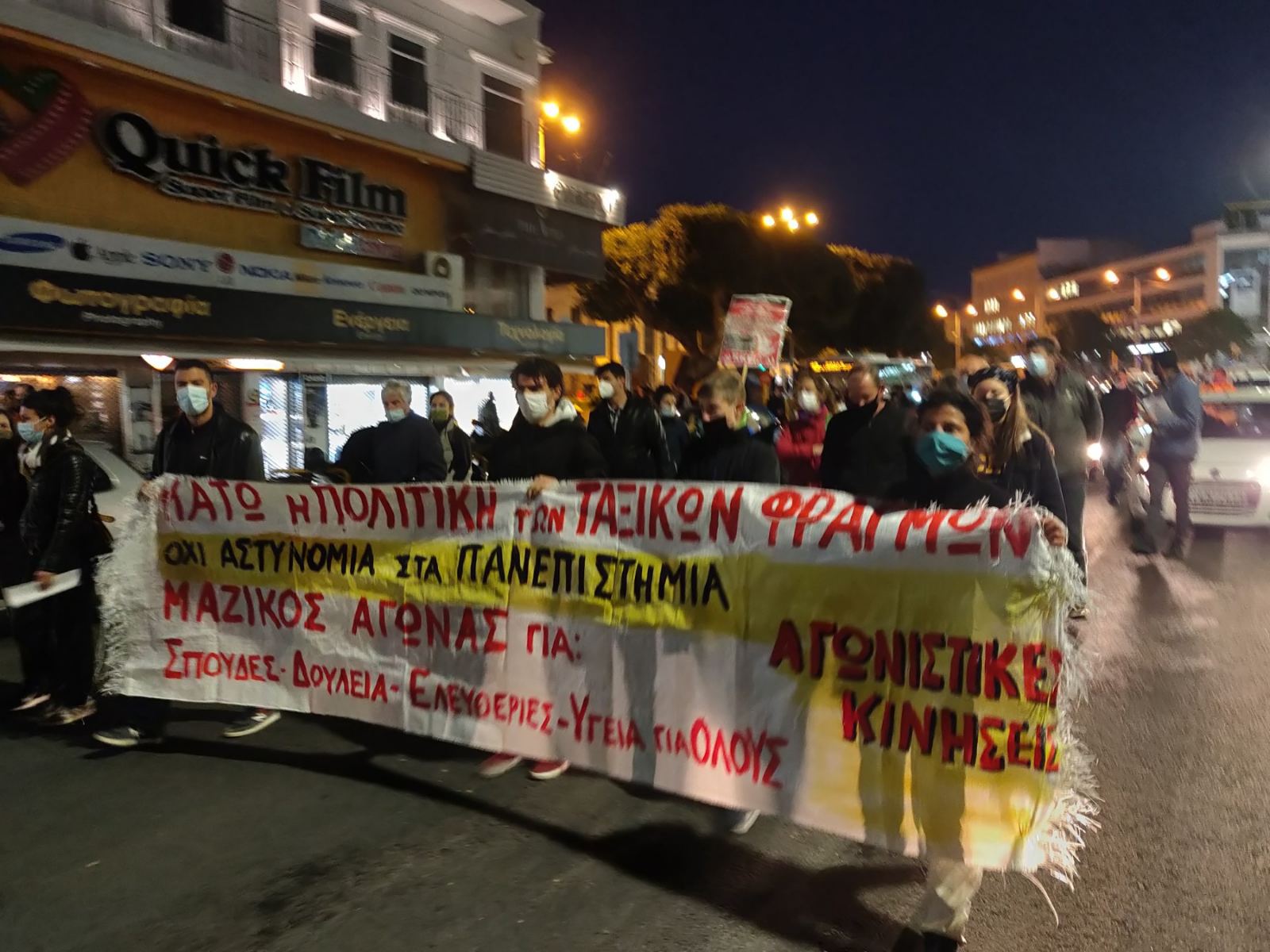 Πραγματοποιήθηκε στο κέντρο της πόλης διαδήλωση καταγγελίας για την αστυνομική επέμβαση στο ΑΠΘ. Με πανό συμμετείχαν πέρα από τις Αγωνιστικές Κινήσεις, το ΜΑΣ και η συνέλευση αλληλεγγύης στην κατάληψη της Rosa Nera.