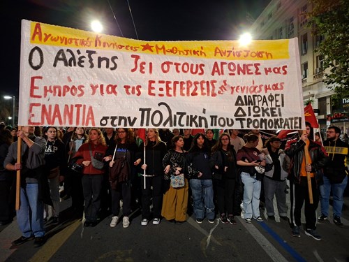 Το Σάββατο 6 Δεκέμβρη στην Αθήνα χιλιάδες λαού και νεολαίας πραγματοποίησαν πορεία για τα 17 χρόνια απο την κρατική δολοφονία του 15χρονου μαθητή Αλέξη Γρηγορόπουλου. Στην διαδήλωση φωνάχτηκαν συνθήματα ενάντια στην φασιστικοποίηση, την καταστολή και την αστυνομοκρατία.