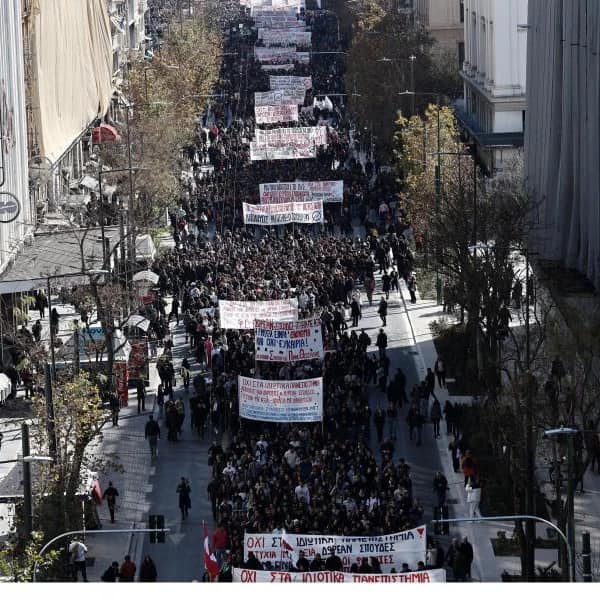 Με συμμετοχή πολλών χιλιάδων φοιτητών πραγματοποιήθηκε σήμερα στην Αθήνα το πανελλαδικό πανεκπαιδευτικό συλλαλητήριο. Φοιτητές από όλη την Ελλάδα ήρθαν να στηρίξουν την κινητοποίηση ενάντια στην ίδρυση των ιδιωτικών πανεπιστημίων και να υπερασπιστούν το δικαίωμα τους για δημόσια και δωρεάν παιδεία για όλο το λαό.