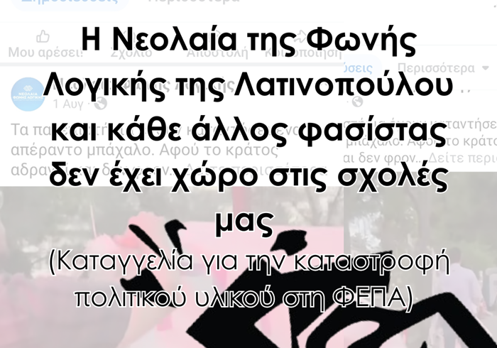 Μέσα στο κατακαλόκαιρο, με τις σχολές κλειστές και μάλιστα ξημερώματα έκανε την «παρέμβασή» της στη ΦΕΠΑ η νεολαία της ακροδεξιάς Φωνής Λογικής, της Λατινοπούλου που χρόνια τώρα έχει συνηθίσει το ακροατήριο στην σεξιστική, ρατσιστική και αντιμεταναστευτική ρητορία.