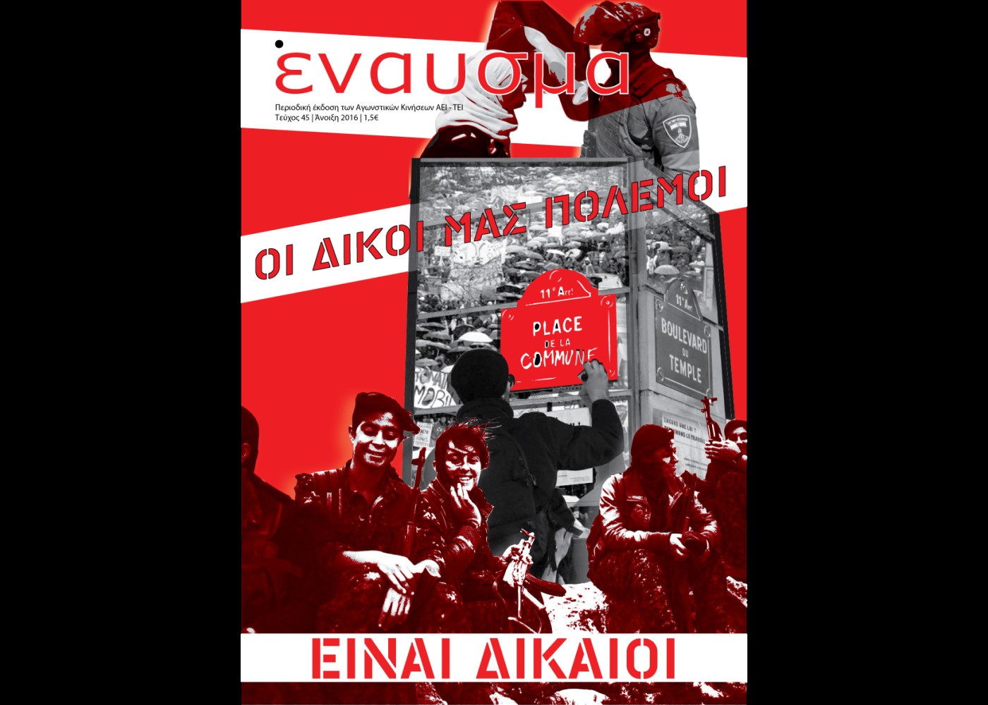 Το περιοδικό Έναυσμα θα είναι διαθέσιμο στις συγκεντρώσεις της Κυριακής 8 Μάη, καθώς και από τη Δεύτερα στα τραπεζάκια των Αγωνιστικών Κινήσεων στις σχολές.