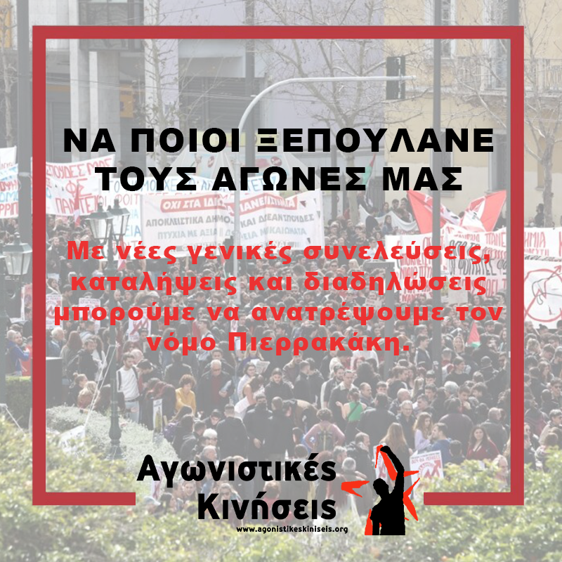 - Ο αγώνας συνεχίζεται - Κάτω ο νόμος Πιερρακάκη.