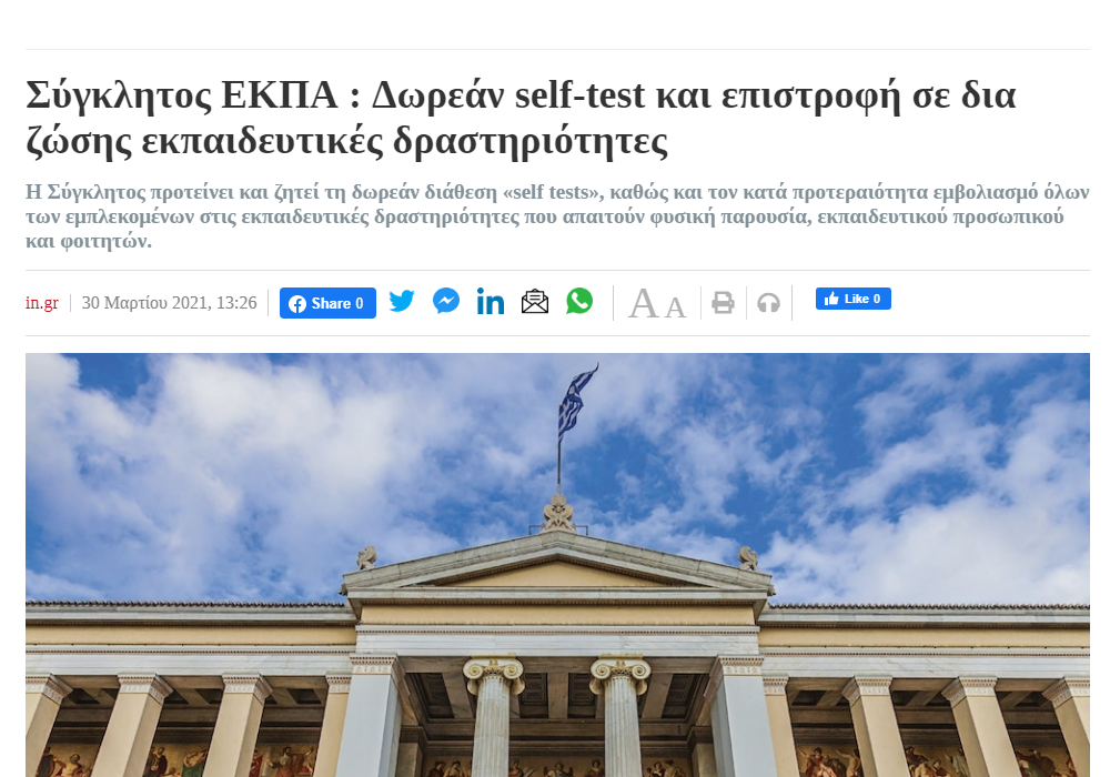 Στο πανεπιστήμιο, οι Σύγκλητοι της λεγόμενης «ακαδημαϊκής κοινότητας» αποδεικνύουν και πάλι ότι δεν νοιάζονται για τα δικαιώματα των φοιτητών και λειτουργούν ως υλοποιητές της κρατικής πολιτικής. Η Σύγκλητος του ΕΚΠΑ ζητά την επαναλειτουργία των σχολών, με μοναδική προϋπόθεση την διενέργεια self tests. Αδιαφορεί για πραγματικά μέτρα προστασίας (μαζικά δωρεάν αξιόπιστα τεστ με κρατική ευθύνη, ολιγομελή τμήματα, μέσα ατομικής προστασίας, καθαριότητα).