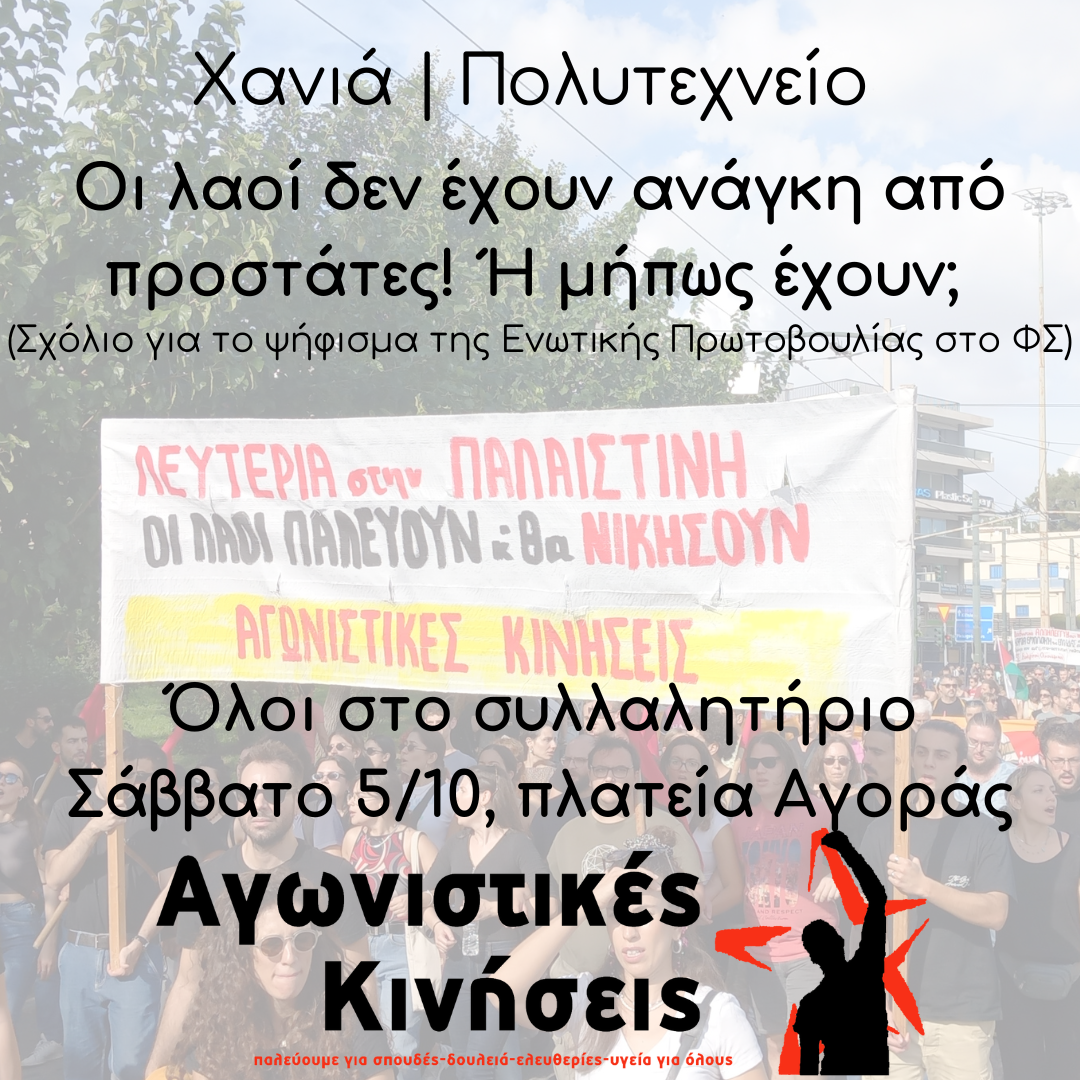 Μετά το λευκό σε πρόταση των Αγωνιστικών Κινήσεων για κινητοποίηση για το Παλαιστινιακό και την εμπλοκή της χώρας μας την περίοδο του φοιτητικού αγώνα ενάντια στα Ιδιωτικά Πανεπιστήμια, με τη γενοκτονία σε πλήρη εξέλιξη, αυτή τη φορά ξεπέρασαν εαυτούς.