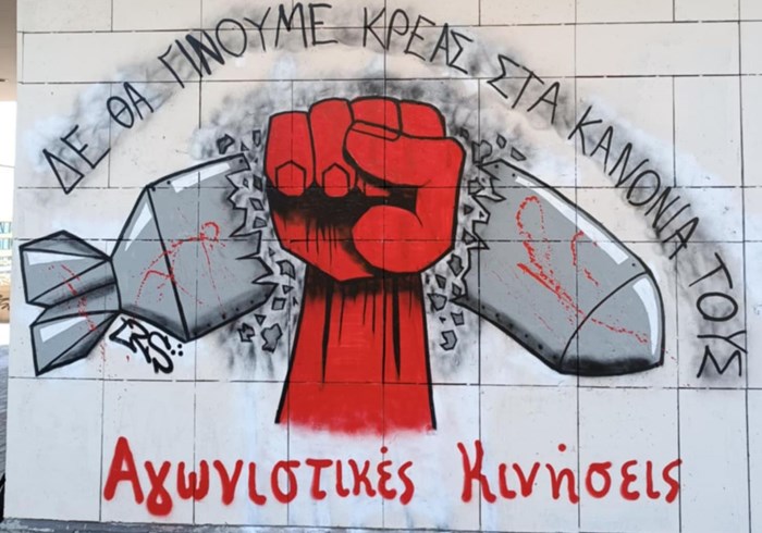 Αντιπολεμικό γκράφιτι των Αγωνιστικών Κινήσεων εν όψει της Συνόδου του ΝΑΤΟ και των επικίνδυνων πολεμικών εξελίξεων που έχουμε μπροστά μας.