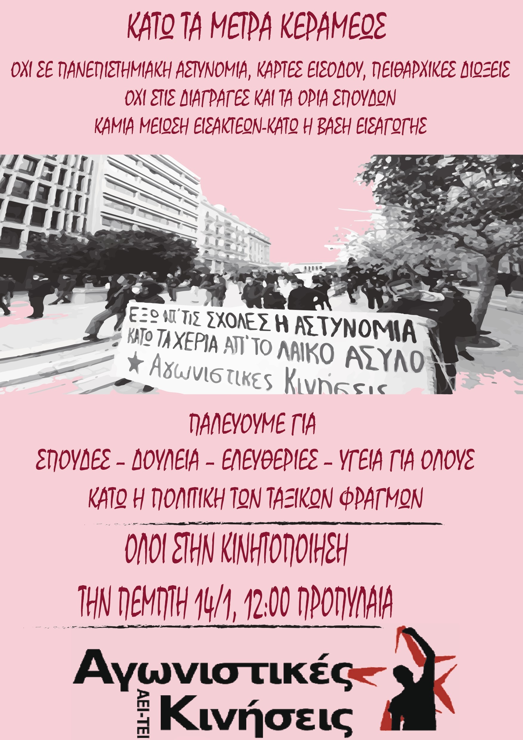 Όλοι/ες στην κινητοποίηση ενάντια στα μέτρα Κεραμέως την Πέμπτη 14/1, στις 12:00, στα Προπύλαια! (με όλα τα μέτρα προστασίας)