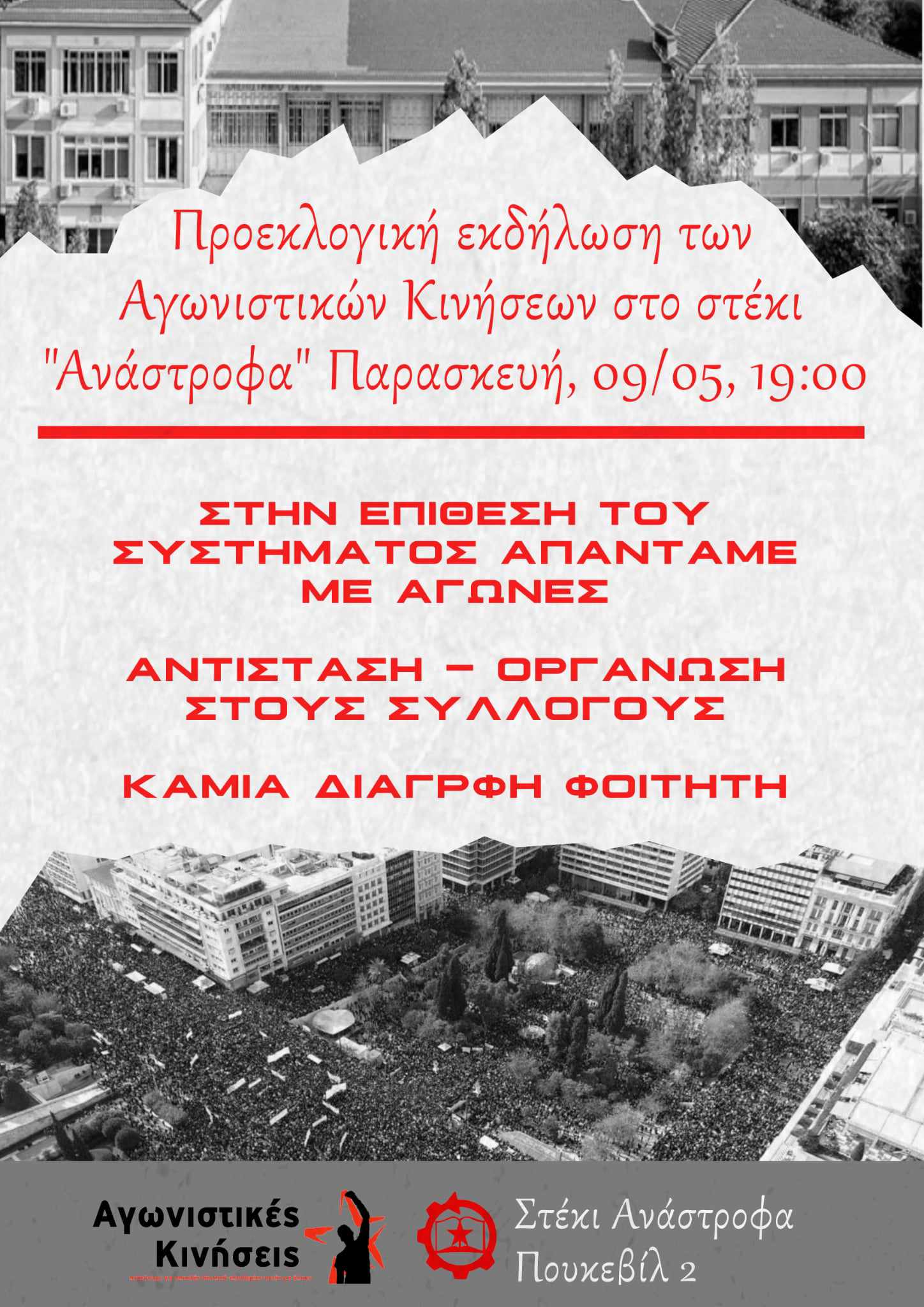 Οι Αγωνιστικές Κινήσεις καταφέραμε να συγκεντρώσουμε σύνολο 67 ψήφους στον ενιαίοσύλλογο της Πολυτεχνικής Σχολής του ΔΠΘ και να πάρουμε 1 έδρα στο Διοικητικό Συμβούλιοτου Συλλόγου.