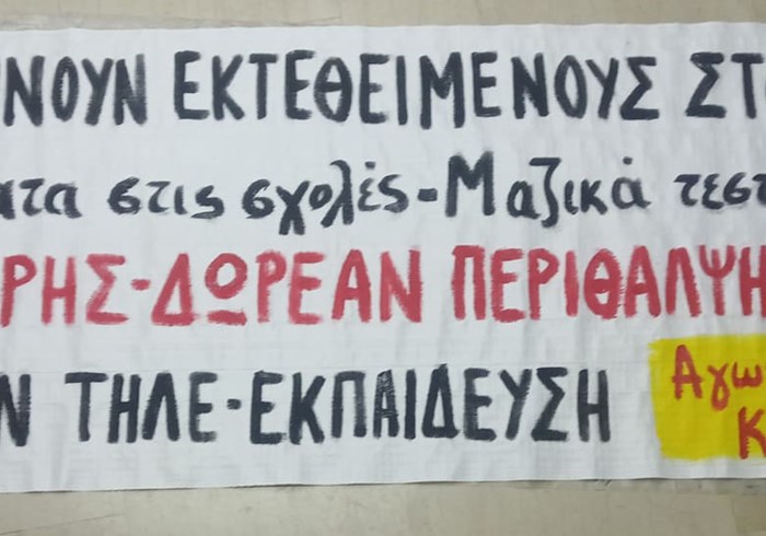 Η τηλεκπαίδευση ήρθε για να μείνει, δεν είναι μέτρο έκτακτο ούτε μέτρο προστασίας. Οι ηλεκτρονικές πλατφόρμες που στήνονται στα πανεπιστήμια δεν αφορούν μόνο το ζήτημα των μαθημάτων. Έρχονται να αμφισβητήσουν και να προσπεράσουν τις ζωντανές δημοκρατικές διαδικασίες των φοιτητών και την δυνατότητα τους να οργανώνονται. Χαρακτηριστικό παράδειγμα ο τρόπος που χρησιμοποιείται για να σπάσει τις καταλήψεις των μαθητών. Το ενδεχόμενο προχώρημα της θα δυσχεράνει ακόμα περισσότερο τους όρους φοίτησής μας και θα αποκλείσει ακόμα περισσότερους από την εκπαιδευτική διαδικασία.