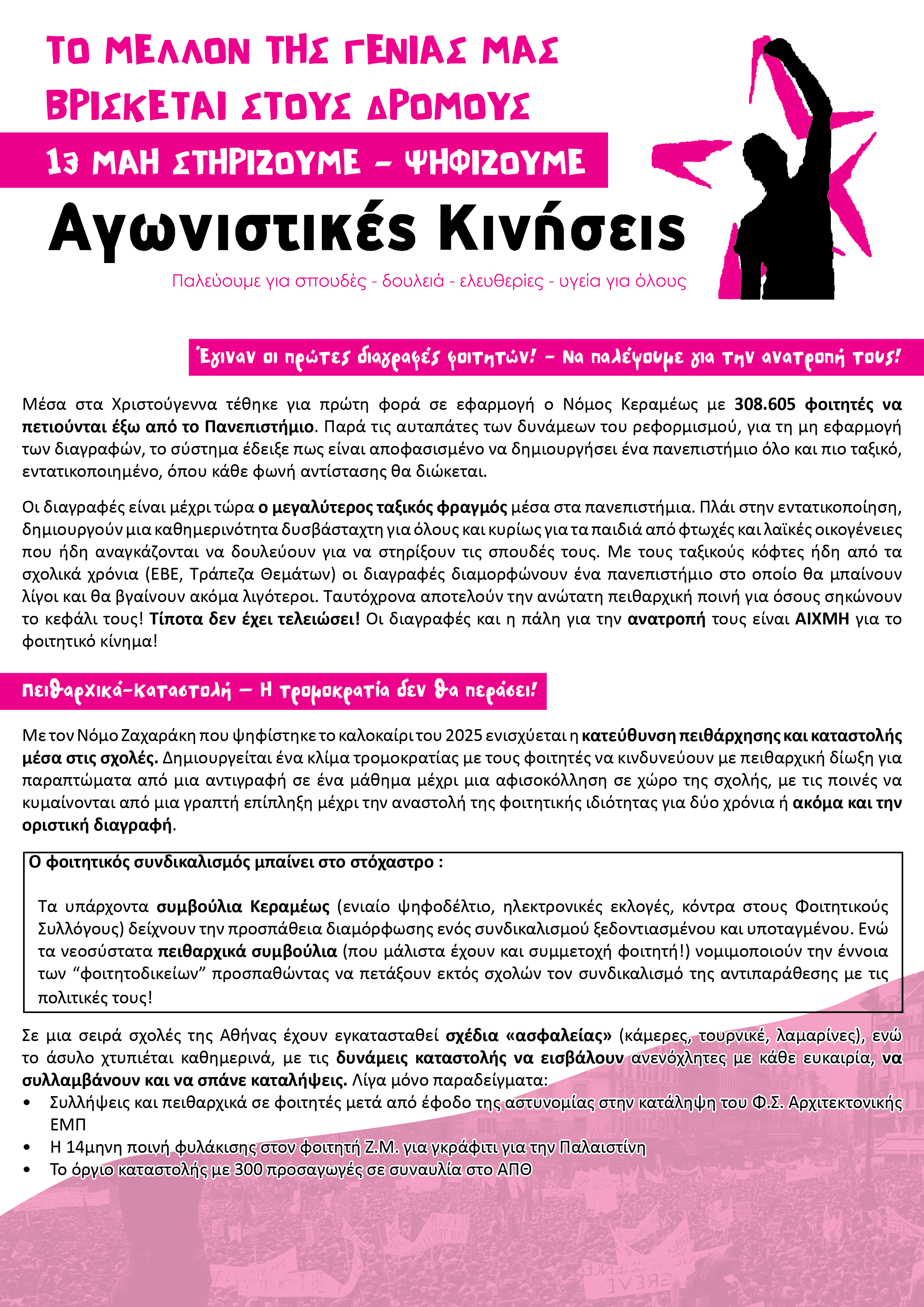Το μέλλον της γενιάς μας βρίσκεται στους δρόμους - 13 Μάη στηρίζουμε - ψηφίζουμε Αγωνιστικές Κινήσεις
