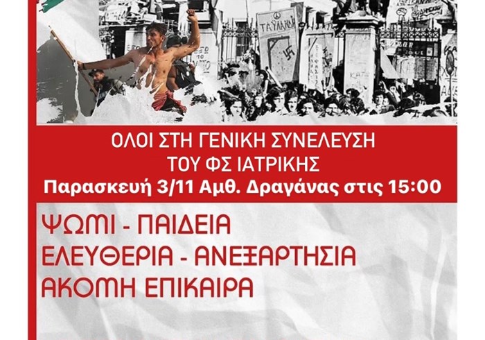 50 χρόνια μετά, η εξέγερση του πολυτεχνείου συνεχίζει να εμπνέει και τους δικούς μας αγώνες για ΨΩΜΊ - ΠΑΙΔΕΙΑ - ΕΛΕΥΘΕΡΊΑ - ΑΝΕΞΑΡΤΗΣΊΑ.