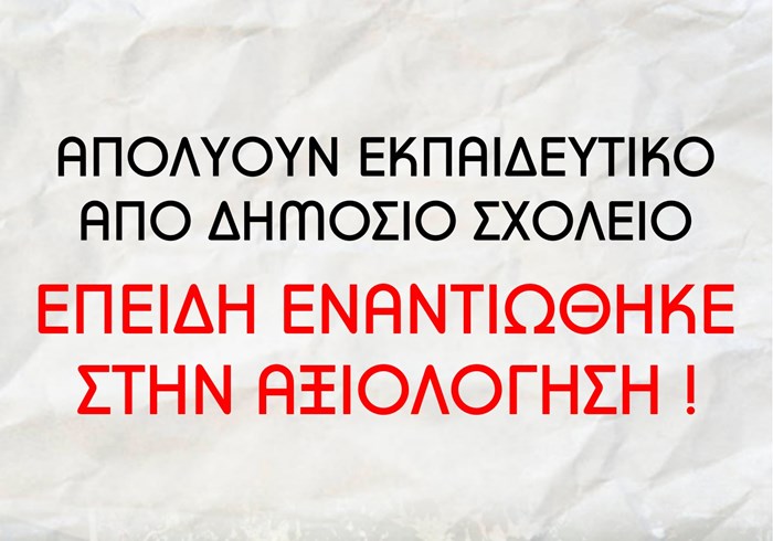 «Δεν συνάδουν» λέει αυτά τα στοιχεία με το σχολικό περιβάλλον και το κύρος του δημοσίου σχολείου. Το ίδιο σχολείο από το οποίο ετοιμάζονται να πετάξουν εκατοντάδες παιδιά με την ίδρυση των Ωνάσειων. «Δεν συνάδουν» ακόμα με την ιδιότητα του εκπαιδευτικού. Του εκπαιδευτικού που προσπαθούν εκείνοι να διαμορφώσουν, του πειθήνιου και υπάκουου αλλά και του εκπαιδευτικού που θα «δασκαλέψει» τα παιδιά στην πειθάρχηση και την υποταγή και όχι στον αγώνα και την διεκδίκηση.