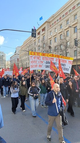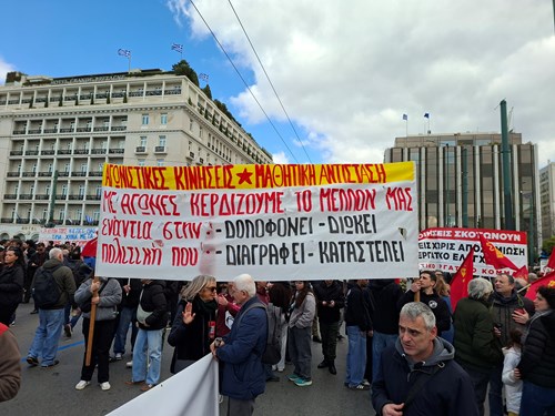Πορευτήκαμε στο Σύνταγμα. Στη συγκέντρωση φωνάζαμε συνθήματα ενάντια στις πολιτικές του συστήματος, που διαρκώς δολοφονεί και στήνει παντού "νέα Τέμπη"