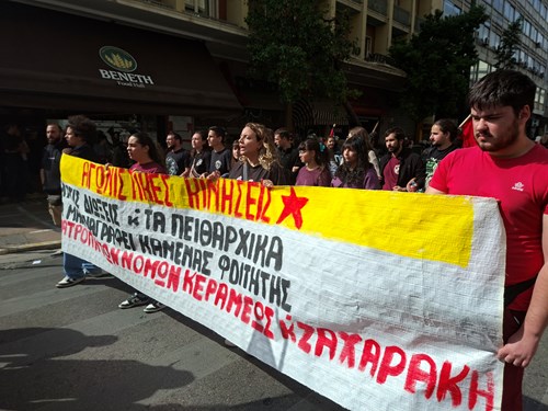 Με αφορμή τις επερχόμενες διαγραφές φοιτητών, την ίδρυση των πρώτων ιδιωτικών πανεπιστημίων αλλά και συνολικά τις προσπάθειες καταστολής του φοιτητικού κινήματος το προηγούμενο διάστημα, πραγματοποιήθηκε χθες στο κέντρο της Αθήνας πανεκπαιδευτική συγκέντρωση & πορεία με τη συμμετοχή Φοιτητικών Συλλόγων και σχημάτων που παρεμβαίνουν στα πανεπιστήμια.