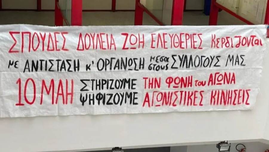 Απαιτούμε την ακύρωση όλων των μαθημάτων που είναι προγραμματισμένα για τις 10 Μάη. Κανένας φοιτητής να μην πάει για μάθημα! Να συμμετάσχουμε όλοι οι φοιτητές στη διαδικασία των εκλογών, κόντρα στην προσπάθεια διάλυσης του φοιτητικού συνδικαλισμού! Καμία παρέμβαση του κράτους και των μηχανισμών του στις διαδικασίες των φοιτητικών συλλόγων! Κάτω τα χέρια από τους συλλόγους, τις φοιτητικές εκλογές και το φοιτητικό κίνημα!