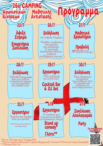 Πρόγραμμα του 26ου camping των Αγωνιστικών Κινήσεων και της Μαθητικής Αντίστασης