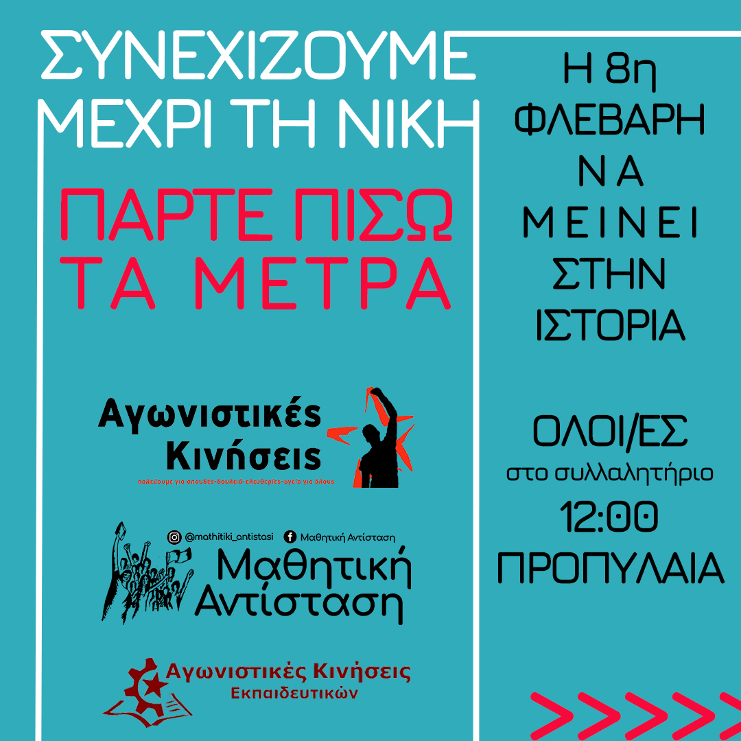 Να κλιμακωθεί ο αγώνας στις 8 του Φλεβάρη στο Πανελλαδικό Πανεκπαιδευτικό