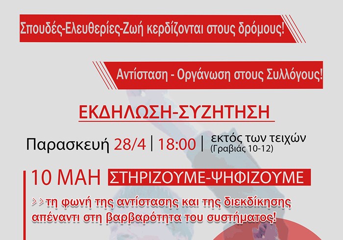 ✊Σπουδές - Ελευθερίες - Ζωή κερδίζονται στους δρόμους οργάνωση αντίσταση στους Συλλόγους