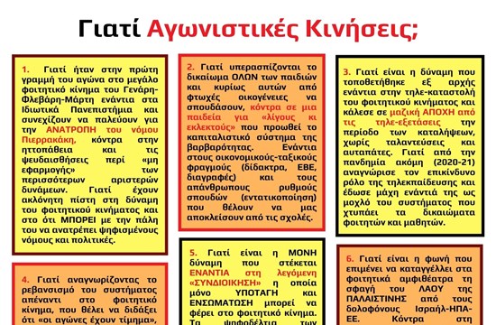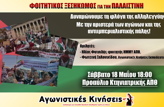 Με επιτυχία πραγματοποιήθηκε η εκδήλωση των Αγωνιστικών Κινήσεων για τον παγκόσμιο φοιτητικό ξεσηκωμό για την Παλαιστίνη.
