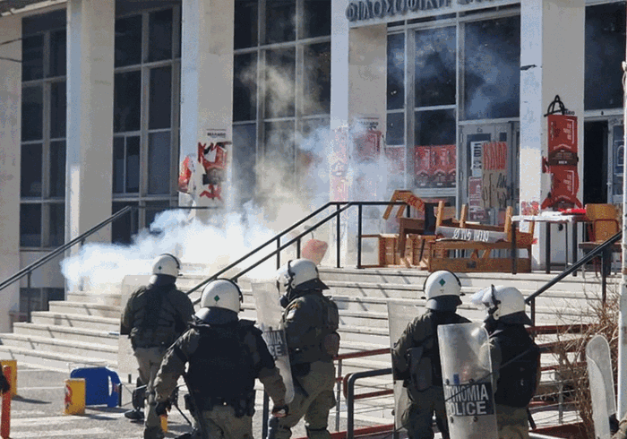 Ακολούθησε επίθεση στο μπλοκ των φοιτητικών συλλόγων στην Αγίας Σοφίας και συλλήψεις φοιτητών! Αφού η πορεία έφτασε στο Α.Π.Θ. υπήρξε προσπάθεια τρομοκράτησης των φοιτητών με ισχυρές αστυνομικές δυνάμεις να περικυκλώνουν το πανεπιστήμιο και να εισβάλλουν στο προαύλιο της Φιλοσοφικής όπου ξεκινούσε συντονιστικό γενικών συνελεύσεων στην κατειλημμένη σχολή.
