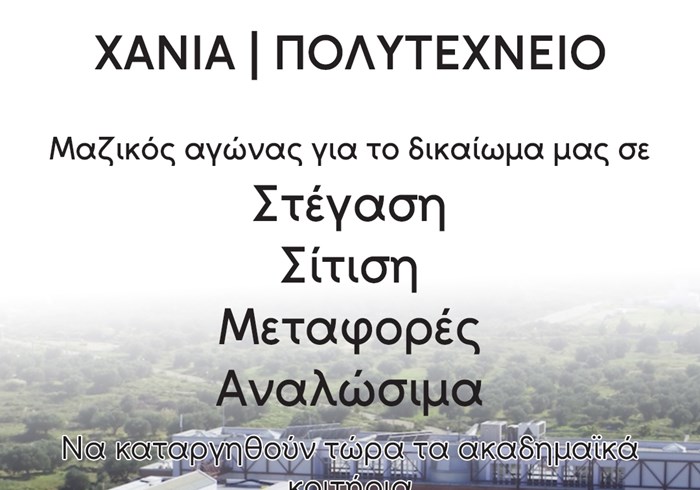 διεκδικήσουμε το δικαίωμα μας σε στέγαση-σίτιση-μεταφορές-αναλώσιμα. Κόντρα σε
