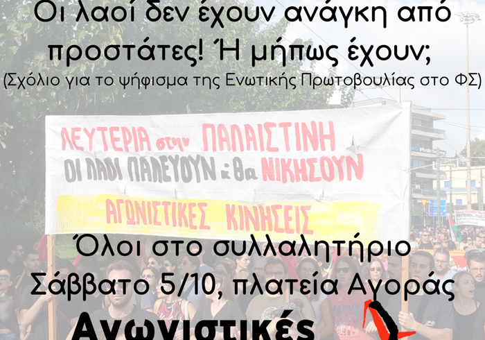 Μετά το λευκό σε πρόταση των Αγωνιστικών Κινήσεων για κινητοποίηση για το Παλαιστινιακό και την εμπλοκή της χώρας μας την περίοδο του φοιτητικού αγώνα ενάντια στα Ιδιωτικά Πανεπιστήμια, με τη γενοκτονία σε πλήρη εξέλιξη, αυτή τη φορά ξεπέρασαν εαυτούς.