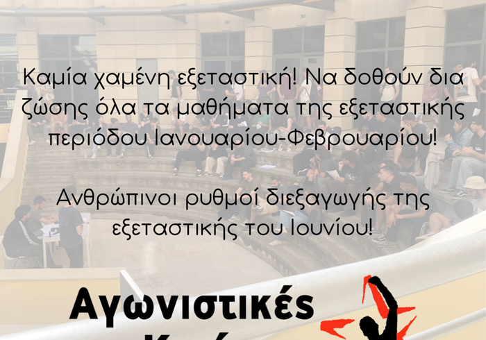 Τις τελευταίες ήμερες, λοιπόν, παρακολουθούμε την κουβέντα που έχει ανοίξει, κυρίως στο ΗΜΜΥ (και όχι μόνο αφού δεν έχει εξασφαλιστεί ακόμα ούτε για τις υπόλοιπες σχολές), για το πότε και πως θα δοθεί η εξεταστική, η οποία μετά την απόφαση της ΣΣ, καταργείται. Αποτελεί, λοιπόν, μια πολιτική επιλογή της ΣΣ που αδιαφορεί για το αν οι φοιτητές δώσουν την εξεταστική υπό αυτές τις συνθήκες ή ακόμα και όχι. Δεν είναι η πρώτη φορά. Η ίδια επιλογή άραγε δεν ήταν και το 2017, όταν η ίδια σχολή αποφάσισε να κόψει την εμβόλιμη, παρά τις μαζικές αντιδράσεις τότε των φοιτητών; Σε ένα τμήμα, όχι το μοναδικό, που η εντατικοποίηση σπάει κόκαλα, το να μη δοθεί η εξεταστική είναι ένα ακόμα εμπόδιο στις σπουδές των φοιτητών. Στο ΗΜΜΥ δεν είναι που αν κάποιος χάσει αλυσίδα αυτομάτως, πάει ένα εξάμηνο πίσω στις σπουδές του; ή στο ΜΗΧΟΠ αν κάποιος δεν περάσει τα προαπαιτούμενα μαθήματα δε μπορεί να μπει στο 4ο έτος; και όλα αυτά στο φόντο του ν+2 και των διαγραφών;