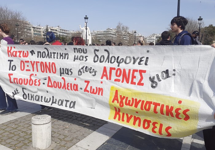Η σημερινή πορεία ξεκίνησε με καλή μαζικότητα περίπου των 1.000 ατόμων από το Άγαλμα Βενιζέλου γύρω στη 1 μμ, μέσω Τσιμισκή και με τελικό προορισμό το Υπουργείο. Η παρουσία της αστυνομίας ήταν διαρκής καθόλη την διάρκεια. Συμμετείχαν με μπλοκ Φοιτητικοί Σύλλογοι, οι Αγωνιστικές Κινήσεις και η Attack.