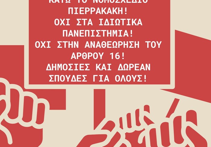 Αν αναρωτιόμαστε γιατί πρέπει ΤΩΡΑ να πάμε κόντρα σε αυτό το ν/σ, είναι γιατί ΤΩΡΑ κρέμεται από μια κλωστή το αν θα μπορούμε να σπουδάζουμε ή όχι. Εμείς. Δεν είναι κάτι μακρινό που αφορά τα παιδιά των ιδιωτικών πανεπιστημίων. Αφορά εμάς, τα παιδιά των δημοσίων. Αφορά τις σπουδές μας και αφορά τα πτυχία μας. Αφορά το ότι θα έχουμε δίδακτρα, υποχρεωτικές θεωρίες, θα μας διαγράφουν στα ν χρόνια, δεν θα έχουμε δωρεάν συγγράμματα, σίτιση και στέγαση, δεν θα μπορούμε να κάνουμε συνελεύσεις και κινητοποιήσεις. Εμείς που με το ζόρι περάσαμε την ΕΒΕ και μπήκαμε σε μια σχολή, εμείς που δουλεύουμε παράλληλα με τις σπουδές μας, εμάς που οι γονείς μας έχουν ματώσει οικονομικά για να μπορούμε να είμαστε εδώ. Δεν θα μπορούμε πλέον να σπουδάζουμε. Και οι λίγοι από εμάς που θα καταφέρουμε να πάρουμε το πτυχίο μετά κόπων και βασάνων, αυτό δεν θα αντιστοιχεί παρά σε κουτσουρεμένα επαγγελματικά δικαιώματα όταν βγούμε να ζητήσουμε δουλειά.