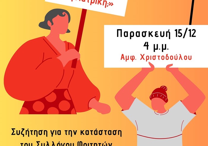 Σας περιμένουμε την Παρασκευή 15/12 στις 4 μ.μ. στο αμφιθέατρο Χριστοδούλου!