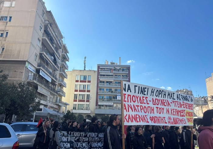 Η σημερινή διαδήλωση έδειξε για άλλη μια φορά πως το έγκλημα στα Τέμπη γεμίζει οργή τον λαό και την νεολαία απέναντι στην δολοφονική πολιτική του συστήματος, την πολιτική της φτώχειας, της εξαθλίωσης και της καταστολής.