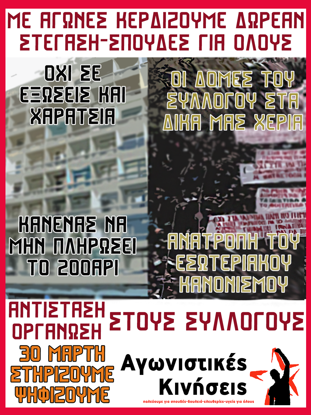 ΠΑΤΡΑ ΕΣΤΙΕΣ | ΜΕ ΑΓΩΝΕΣ ΚΕΡΔΙΖΟΥΜΕ ΖΩΗ – ΣΤΕΓΑΣΗ – ΣΠΟΥΔΕΣ – ΔΟΥΛΕΙΑ ΜΕ ΔΙΚΑΙΩΜΑΤΑ! ΑΝΤΙΣΤΑΣΗ – ΟΡΓΑΝΩΣΗ ΣΤΟΥΣ ΣΥΛΛΟΓΟΥΣ
