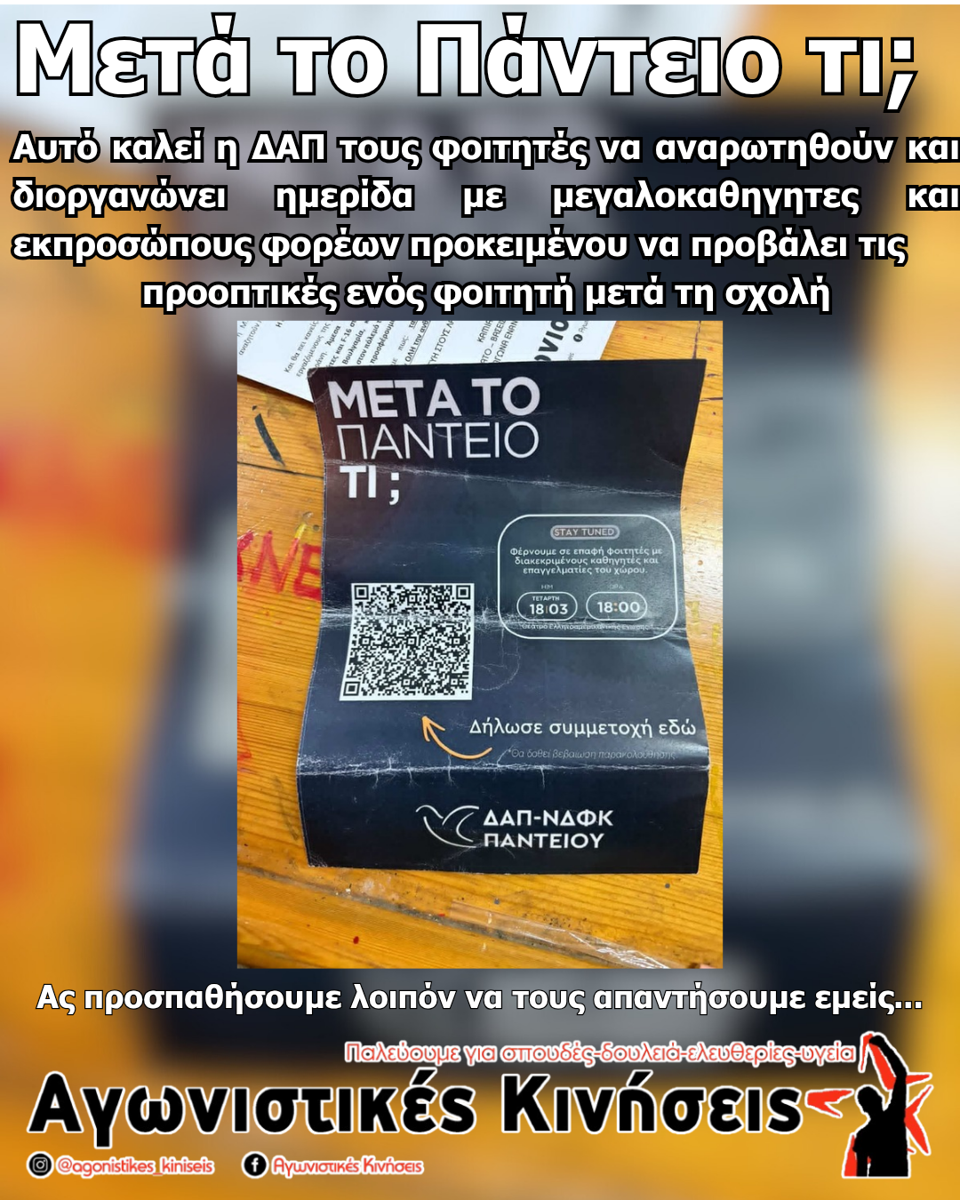 Αυτό καλεί η ΔΑΠ ΝΔΦΚ (παράταξη της ΝΔ στα πανεπιστήμια) τους φοιτητές να αναρωτηθούν και διοργανώνει ημερίδα με μεγαλοκαθηγητες και εκπροσώπους φορέων...