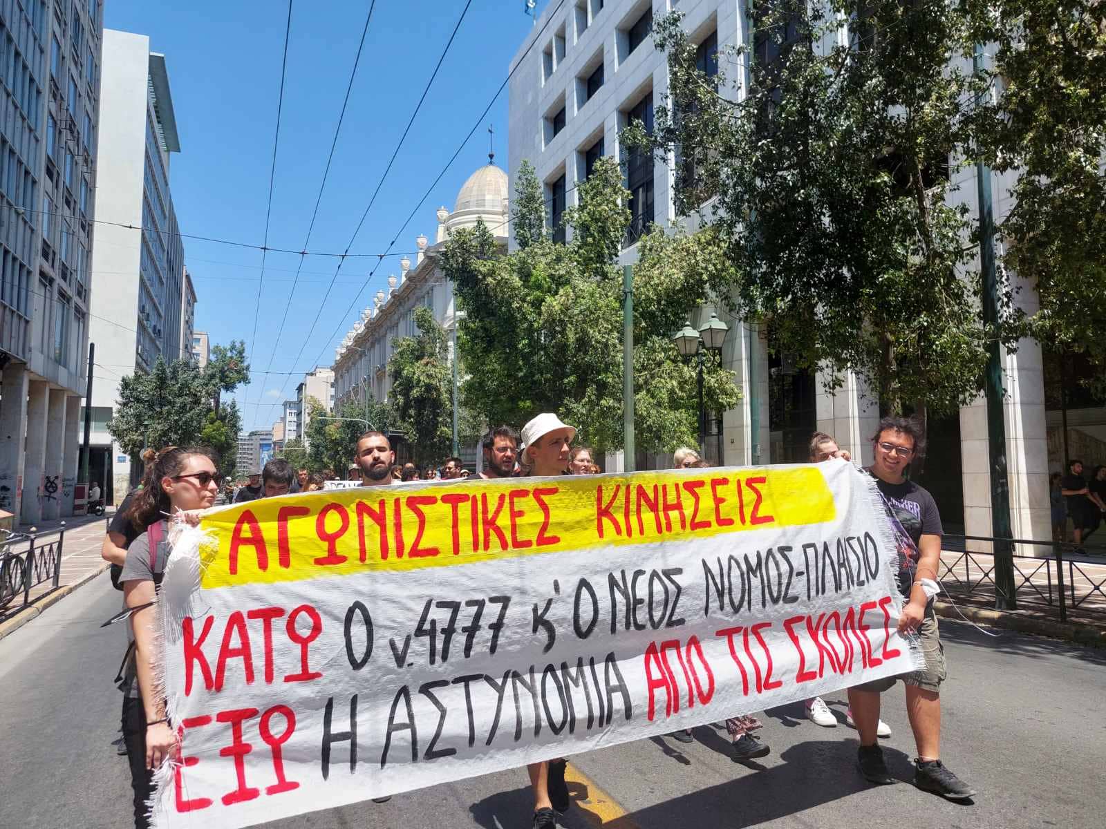 Οι Αγωνιστικές Κινήσεις με διακριτό μπλοκ συμμετείχαν στη διαδήλωση φωνάζοντας συνθήματα ενάντια στο νόμο 4777 (Κεραμέως – Χρυσοχοΐδη) και τον νέο νόμο πλαίσιο που ετοιμάζεται να καταθέσει η κυβέρνηση. Κατήγγειλαν την πολιτική της φασιστικοποίησης της δημόσιας και της πολιτικής ζωής, που φέρνει την αστυνομία στα πανεπιστήμια και καταργεί το άσυλο.