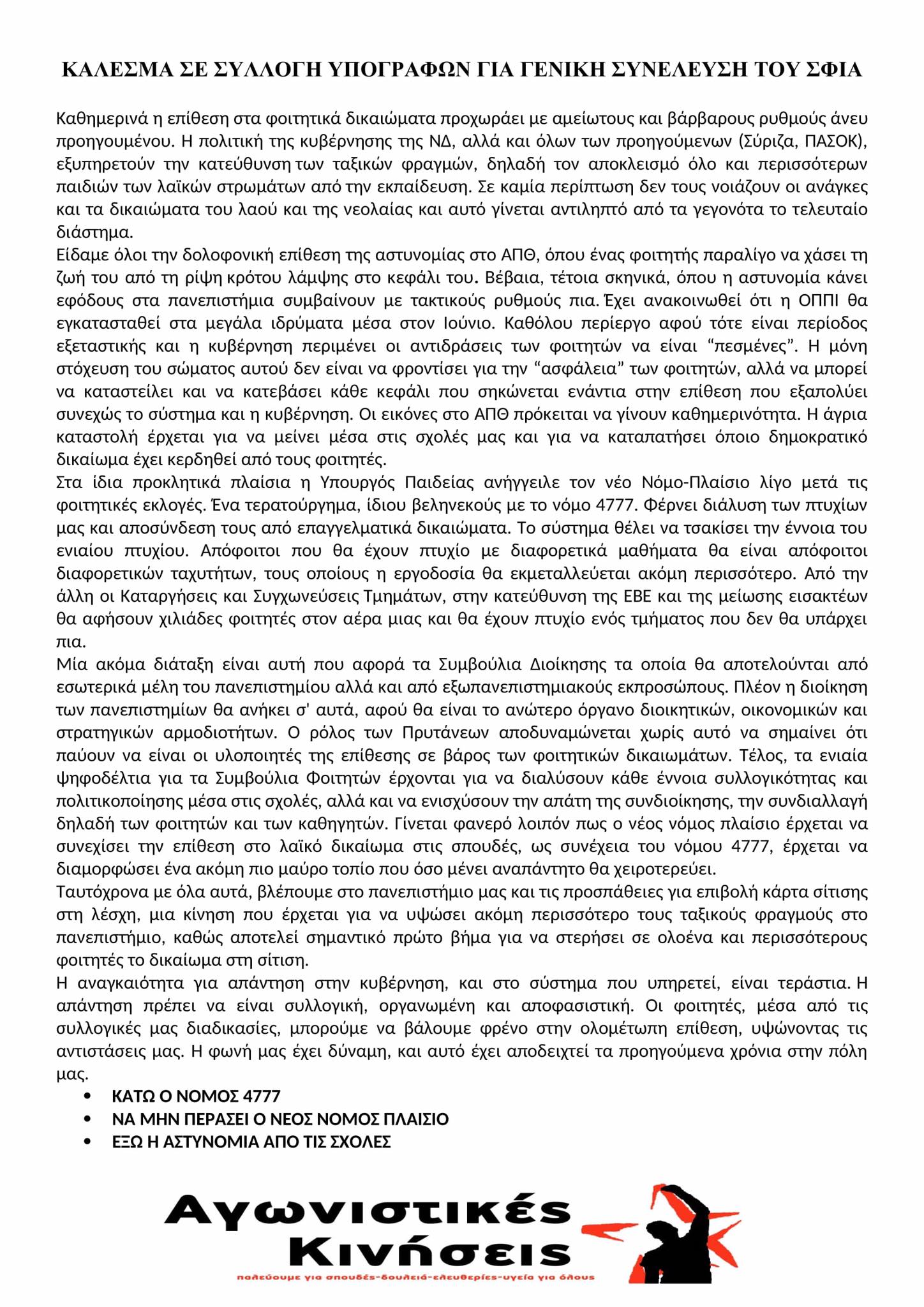 Αλεξανδρούπολη15 Ιουν 2022 ΑΛΕΞΑΝΔΡΟΥΠΟΛΗ| ΚΑΛΕΣΜΑ ΓΙΑ ΣΥΛΛΟΓΗ ΥΠΟΓΡΑΦΩΝ ΓΙΑ ΟΡΙΣΜΟ ΓΕΝΙΚΗΣ ΣΥΝΕΛΕΥΣΗΣ ΤΟΥ ΣΦΙΑ Καλούμε συλλογή υπογραφών για να οριστεί Γενική Συνέλευση του ΣΦΙΑ μέσα στο Σαββατοκύριακο