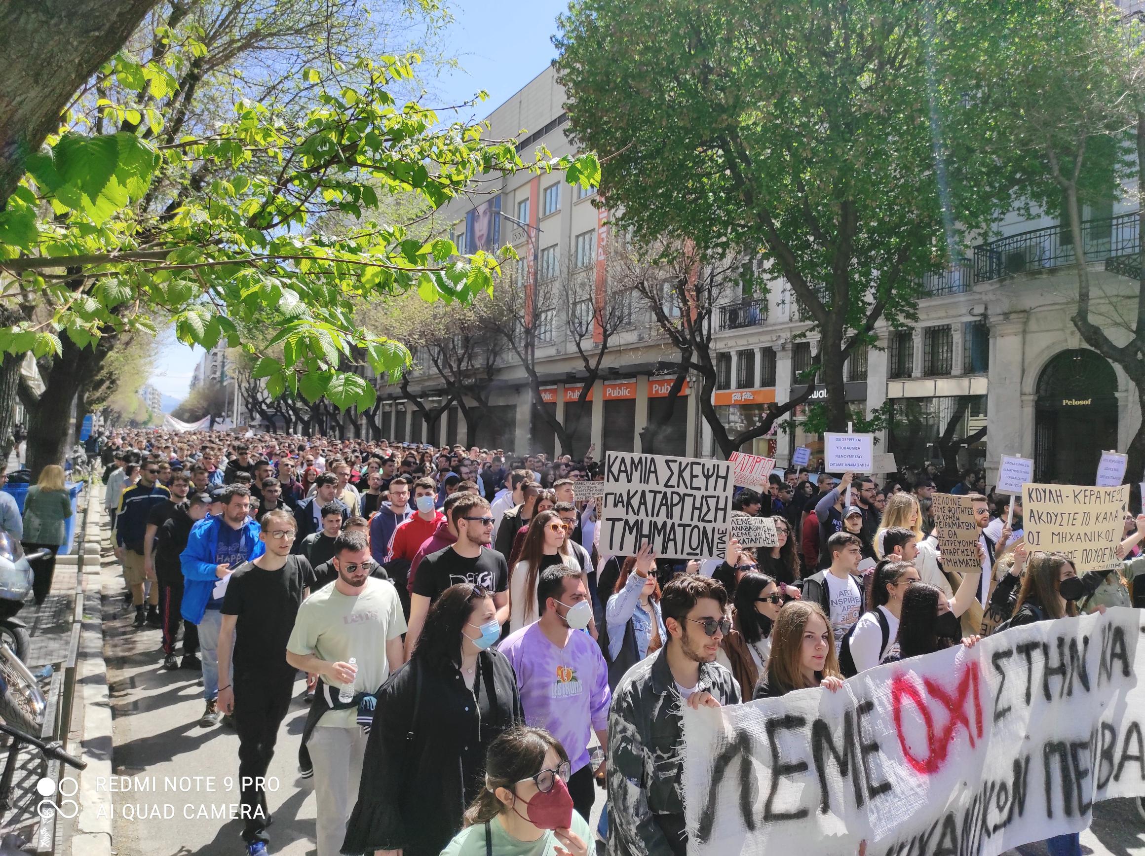 Με μαζικότητα περίπου 1000 ατόμων πραγματοποιήθηκε η σημερινή διαδήλωση που είχαν καλέσει οι φοιτητές του ΔΙΠΑΕ ενάντια στις συγχωνεύσεις και τις καταργήσεις των τμημάτων τους. Με δυναμισμό και παλμό, φώναξαν συνθήματα ενάντια στα σχέδια του Υπουργείου να τους πετάξει έξω από τις σχολές τους.