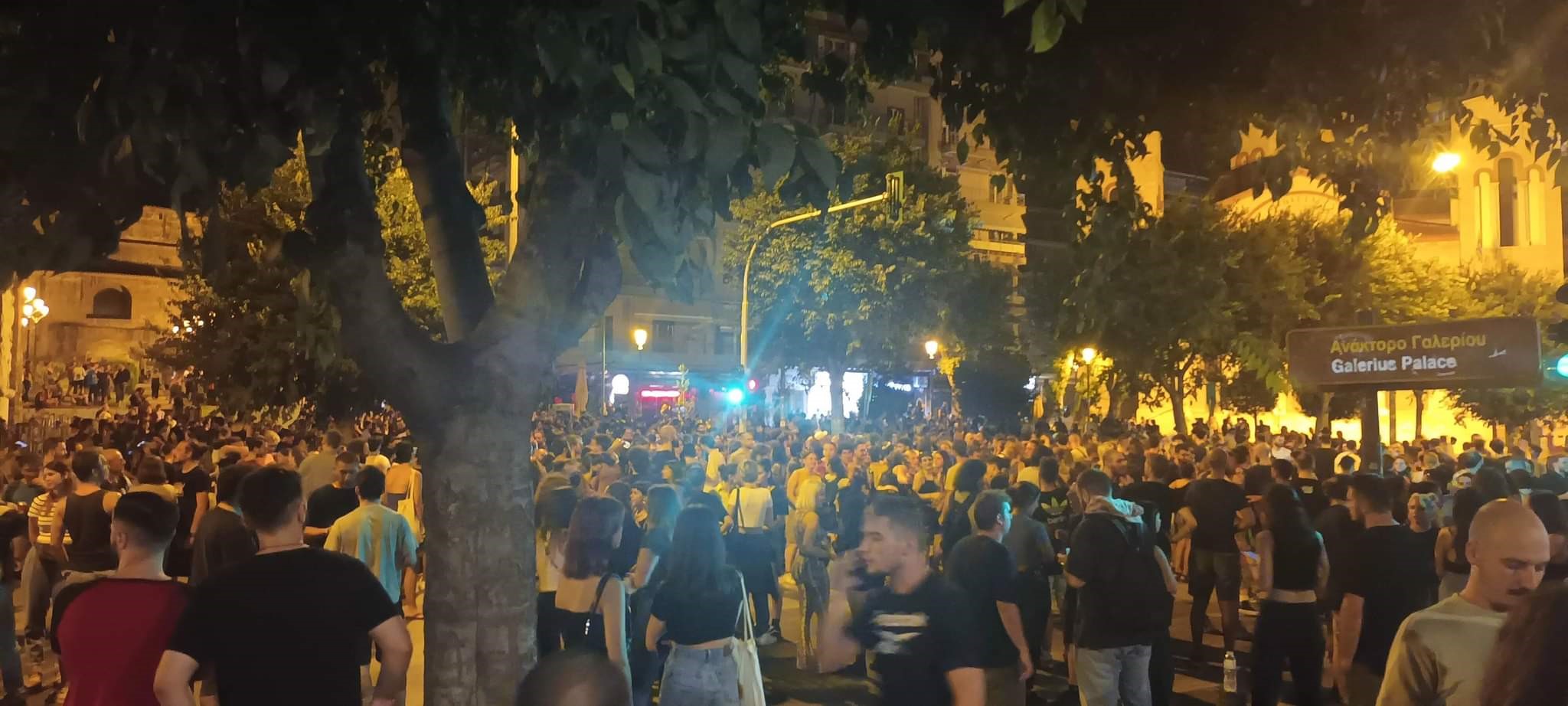 Μετά το χτύπημα στη συναυλία, ακολούθησε αυθόρμητη διαδήλωση στην Εγνατία, την οποία πήρε από πίσω η αστυνομία συνοδεία της αύρας που για πρώτη φορά χρησιμοποιήθηκε απέναντι σε διαδηλωτές στη Θεσσαλονίκη! Είναι η ίδια αύρα που είχε στρατοπεδεύσει από το πριν το καλοκαίρι στο ΑΠΘ για να τρομοκρατήσει τους φοιτητές. Η αστυνομία προχώρησε και σε 2 συλλήψεις.