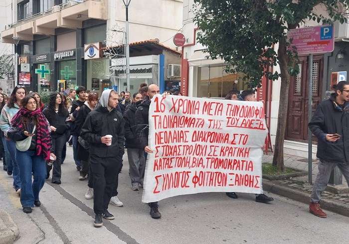 ΠΑρασκεύη 6/12 πραγματοποιήθηκε κινητοποίηση του Συλλόγου Φοιτητών Ξάνθης με προσυγκέντρωση στα προκάτ και κατεύθυνση προς την κεντρική πλατεία, μετά από απόφαση του ΔΣ που έγινε την Τρίτη 3/12.Στη συνδιαμόρφωση συμμετείχαν οι Αγωνιστικές Κινήσεις, η ΠΚΣ και τα ΕΑΑΚ. Ακολούθησε πορεία στην πόλη της Ξάνθης , όπου ακούστηκαν αρκετά συνθήματα για την κρατική δολοφονία του Αλέξη Γρηγορόπουλου, του 15χρονου μαθητή που σκοτώθηκε από τον αστυνομικό Ε. Κορνονέα, έναν αστυνομικό τον οποίο όπλισε το σύστημα. Επίσης φωνάχτηκαν συνθήματα τα οποία κατήγγειλαν την κρατική καταστολή και το σύστημα που τα γεννάει. Η 6η Δεκέμβρη δεν είναι απλά μία μέρα μνήμης αλλά μια μέρα αγώνα. Πρέπει να αγωνιστούμε ενάντια στο σύστημα που οπλίζει μπάτσους, που περνάει αντιεκπεδαιτικούς και αντιλαϊκούς νόμους και που μας προετοιμάζει για άδικους πολέμους. Απάντηση μας πρέπει να είναι οι μαζικοί αγώνες στον δρόμο και στη μαζικοποίηση των συλλογικών μας οργάνων. Πρέπει να πάμε κόντρα στο σάπιο μέλλον που μας προετοιμάζουν, να τιμήσουμε τη μνήμη του Αλέξη με αγώνες για σπουδές-δουλειά-ελευθερίες. Ενάντια στην πολιτική που μας δολοφονεί καθημερινά. Ενάντια στους άδικους πολέμους . Ενάντια στο σάπιο σύστημά τους.