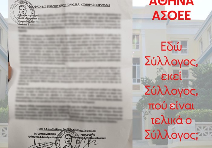 Ακόμη και κατά τη διάρκεια της εξεταστικής, οι φοιτητές της ΑΣΟΕΕ ήρθαμε και πάλι αντιμέτωποι με την συνεχή προσπάθεια των συστημικών δυνάμεων να διαλύσουν περαιτέρω το Φοιτητικό μας Σύλλογο, να βάλουν ταφόπλακα μία και καλή στις συλλογικές διαδικασίες και τις διεκδικήσεις μας. Με έκπληξη είδαμε την ΠΑΣΠ ΑΣΟΕΕ να μοιράζει μία σφραγισμένη "Απόφαση ΔΣ", υπογεγραμμένη από τους φοιτητοπατέρες της ΠΑΣΠ, από ένα ΔΣ που προέκυψε από τις εκλογές - παρωδία που διοργανώνει κάθε χρόνο η συγκεκριμένη δύναμη οι οποίες μάλιστα πέρυσι διεξήχθησαν σε... πολιτιστικό κέντρο!