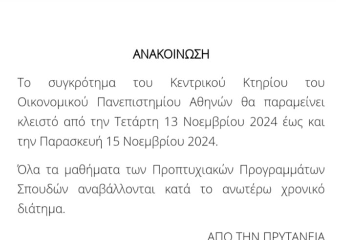 ΚΑΤΑΓΓΕΛΛΟΥΜΕ την επιβολή lock-out από την Πρυτανεία της ΑΣΟΕΕ σήμερα (οπότε και είναι προγραμματισμένη η Γενική Συνέλευση του Φοιτητικού μας Συλλόγου ενόψει της επετείου της εξέγερσης του Πολυτεχνείου), στις 14 και 15/11. Η απόφαση αυτή είναι ένα χτύπημα στο δικαίωμά μας να συζητάμε και να αποφασίζουμε συλλογικά. Είναι και αυτή στην κατεύθυνση της φασιστικοποίησης της δημόσιας και πολιτικής ζωής. Εδώ και αρκετά χρόνια η πρυτανεία της ΑΣΟΕΕ αποφασίζει να επιβάλει λοκ-άουτ στη σχολή πριν το τριήμερο του πολυτεχνείου και αυτό για να μην μπορέσουν οι φοιτητές να συζητήσουν συλλογικά με αφορμή αυτή την εξέγερση της νεολαίας το ’73.