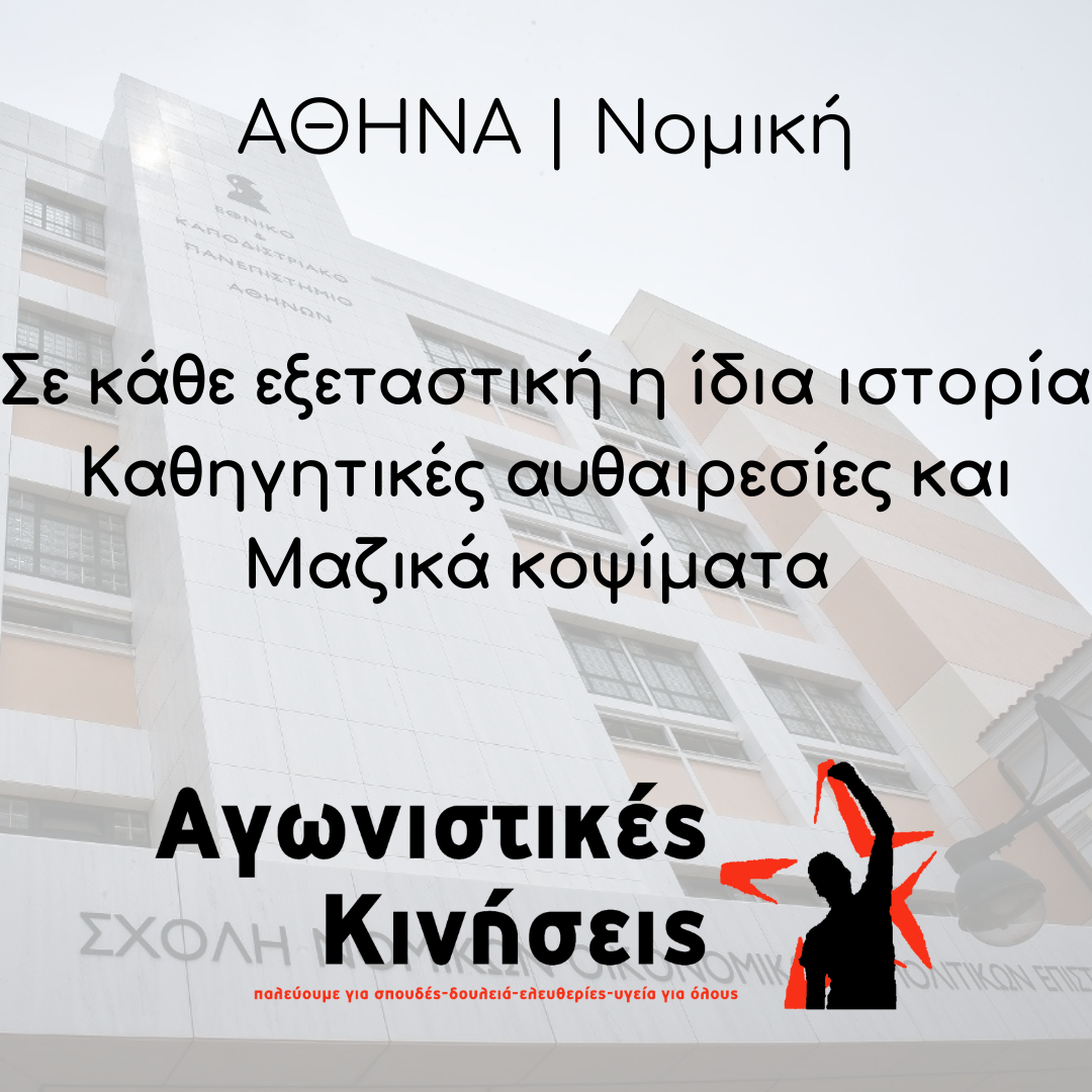 Στα μαζικά κοψίματα πρέπει να απαντήσουμε συλλογικά μέσα από τα όργανα πάλης μας μαζί απευθυνόμενοι στους πραγματικούς μας συμμάχους που βιώνουμε μαζί την επίθεση. Να μην έχουμε καμία αυταπάτη ότι ο ατομικός δρόμος που θέλει να μας σπρώξει το σύστημα θα μας λύσει τα προβλήματα .Να μην υποταχθούμε στην κανονικότητα των μαζικών κοψιμάτων και των fast-track εξεταστικών, αλλά να αντισταθούμε στην επίθεση τους, διεκδικώντας ανθρώπινους όρους σπουδών!