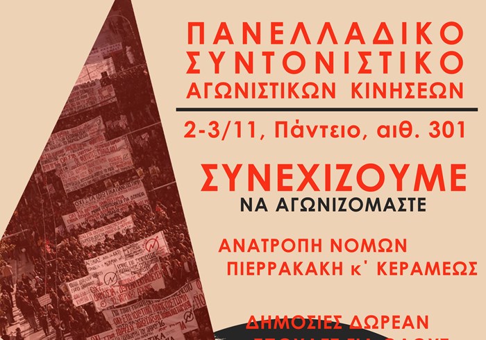 Οι Αγωνιστικές Κινήσεις διοργανώνουμε στις 2&3/11 το πανελλαδικό συντονιστικό μας. Για να συζητήσουμε συλλογικά, για απολογίσουμε τη δράση μας και να δούμε πως θα παρεμβουμε πιο αποτελεσματικά στους αγώνες που έρχονται